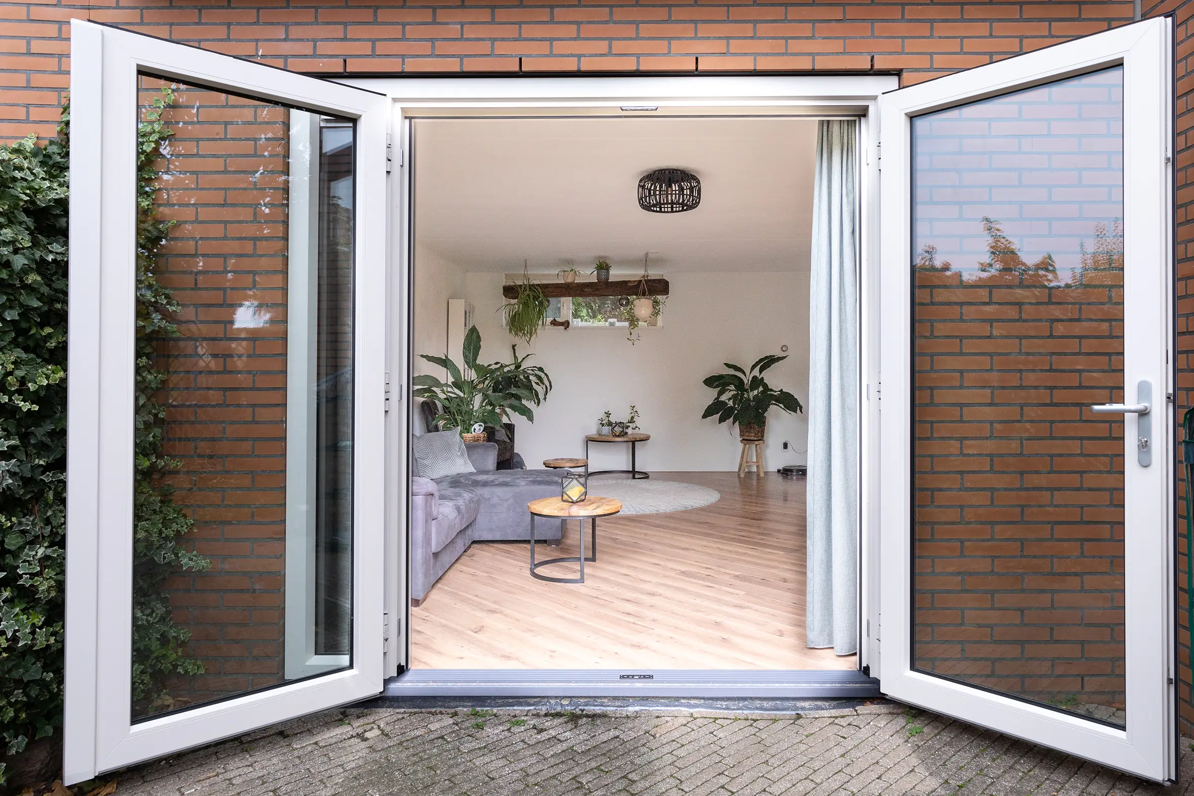 Kunststof openslaande deuren zijn voorzien van isolerend glas en stevige sluitingen. Dit zorgt voor comfort, energiebesparing én inbraakwerendheid.
