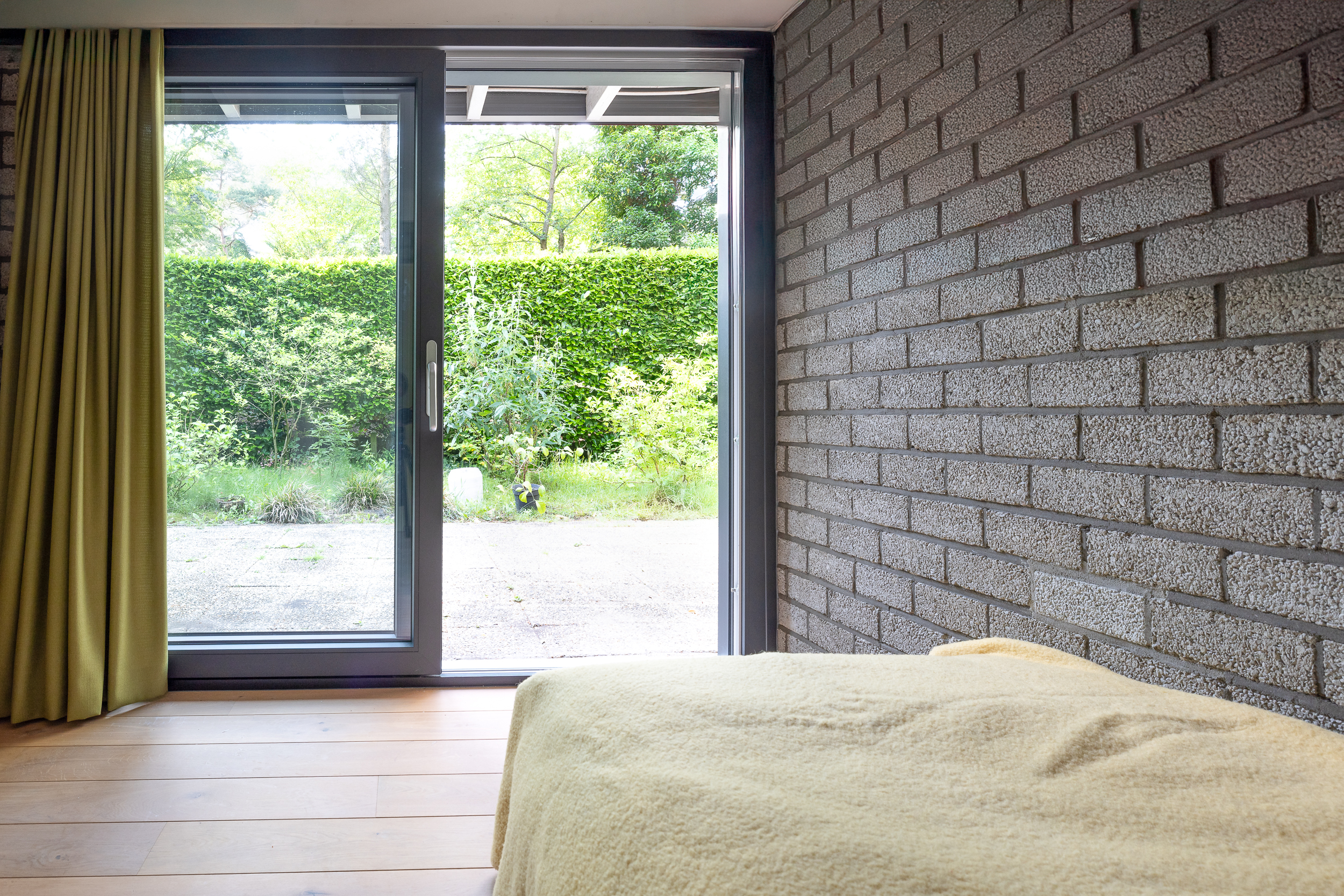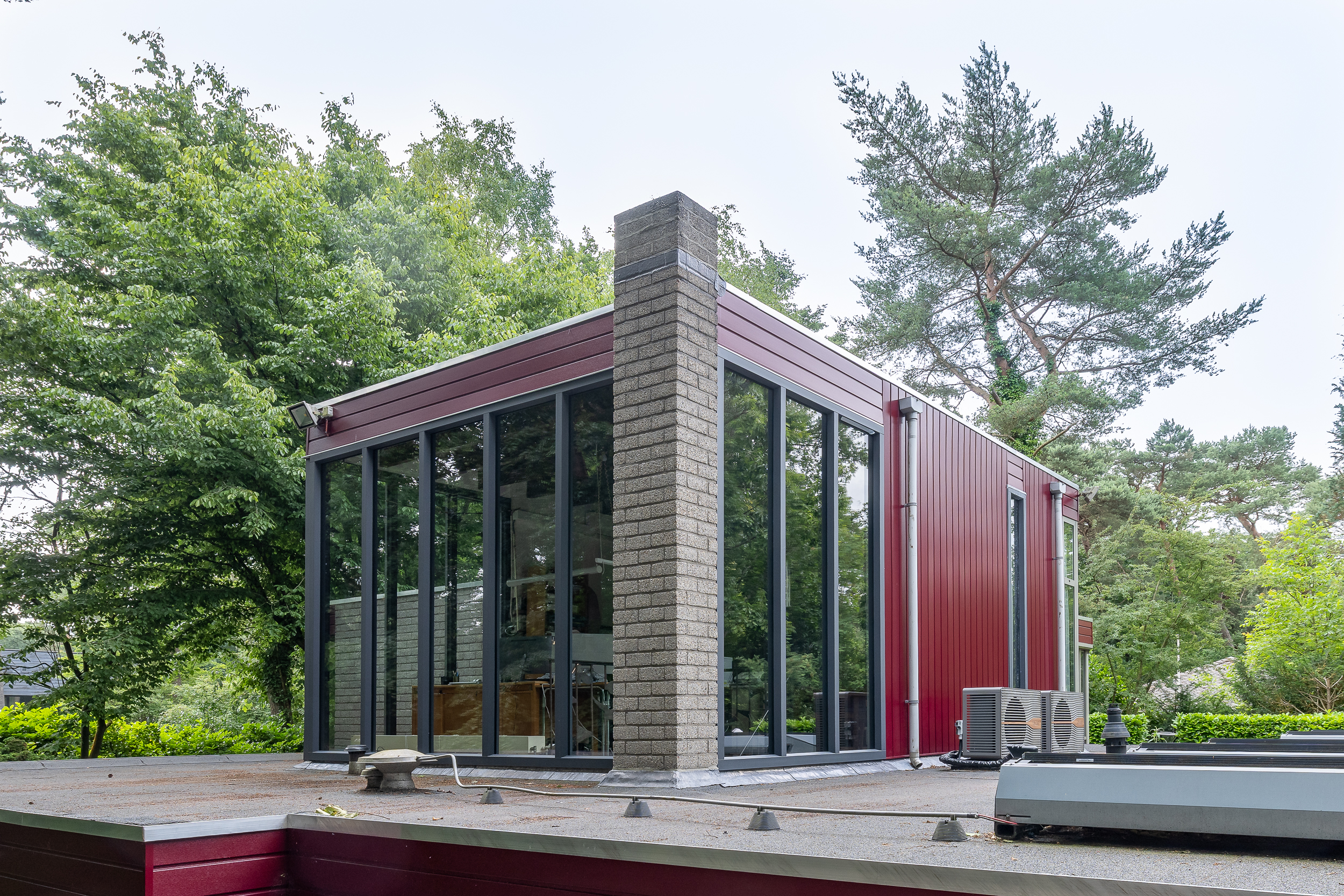 De gelijkvloerse woning heeft door het grote vloeroppervlak veel glas en grote raampartijen die uitkijken op de groene omgeving. Maar na ruim vijftig jaar begonnen de aluminium kozijnen uit de jaren zeventig hun leeftijd te tonen.